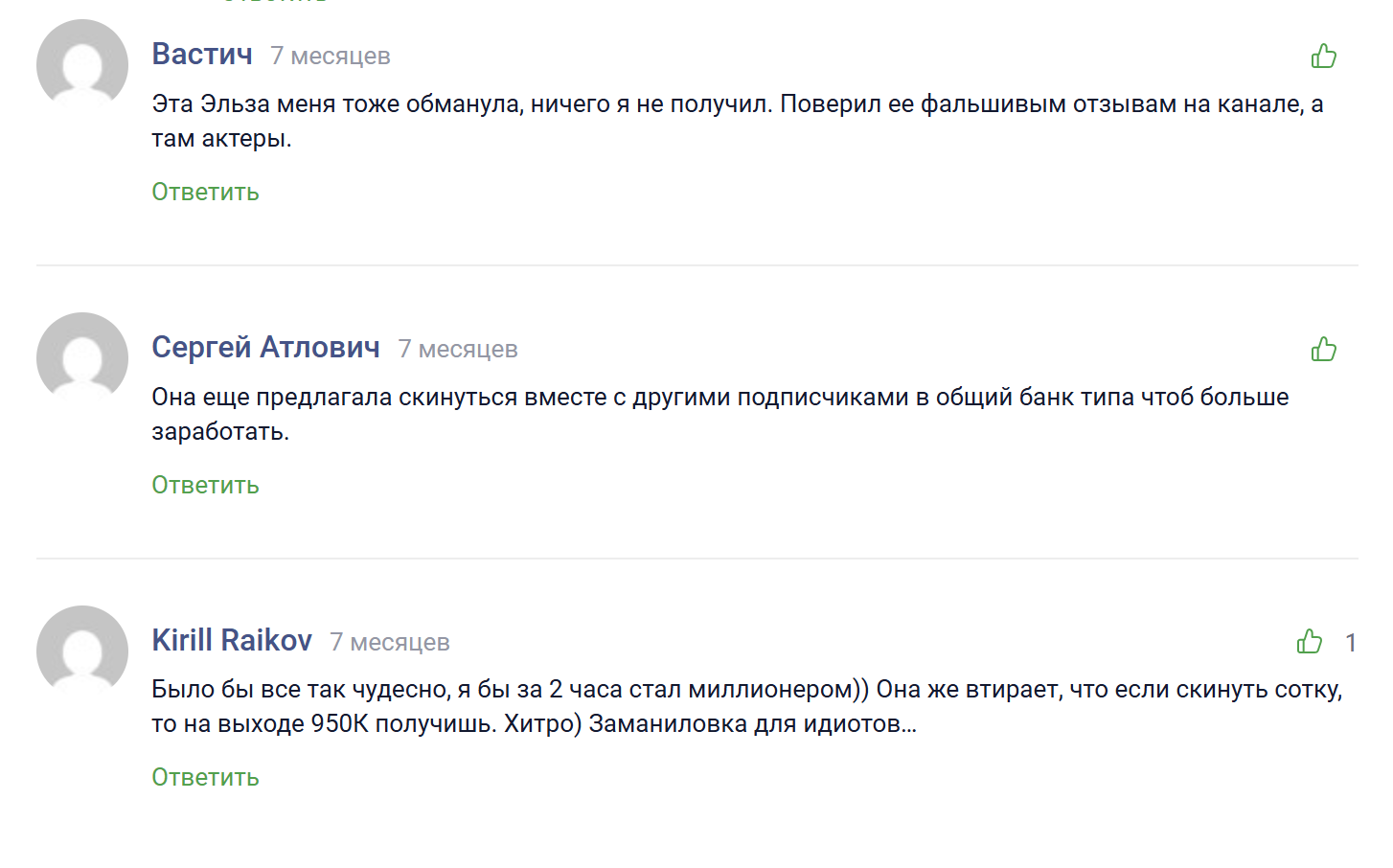 В сети есть немало негативных отзывов о трейдере elza traiding. Актриса не торгует на бирже, она записывает контент, который потом используется в нескольких Телеграмм каналах. Общение с клиентами от ее имени ведут профессиональные мошенники, умеющие надавить на жадность и страх. Схема выглядит так: