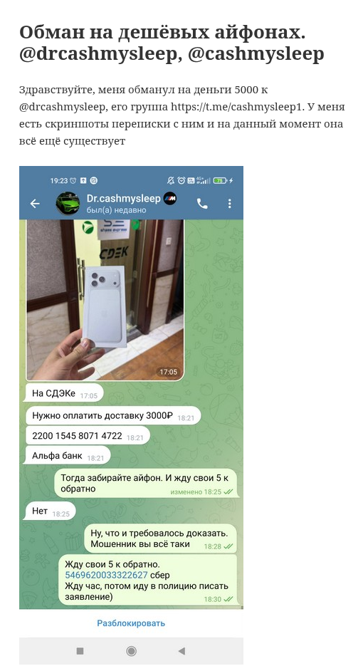 Админ канала всячески старается привлечь подписчиков к своим схемам. Да, агрессивных прямых продаж на канале нет, но есть отзывы, где люди пишут, как админ этого проекта обманул их путем выманивания доплаты за купленный товар. На начало 2026 года все публикации с продажами чего-либо удалены, но через TGStat можно увидеть не только эти посты, но и рекламу криминальных услуг.