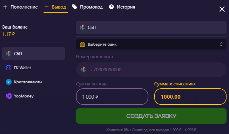 Вывод на основной аккаунт – лишь малая часть процесса. Минимальная сумма, чтоб вывести деньги уже с сайта равна ₽1,000, то есть 3 000 000 внутриигровых токенов. Основным механизмом заработка монет является открытие кейсов, где выигрыш попадаться начиная от суммы 1 000, то есть есть возможность уходить в минус и плюс.