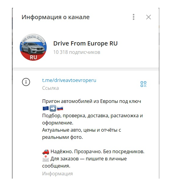 Пока в сети нет нормальных независимых отзывов о телеграм-канале Drive from europe. Не видно комментариев от реальных людей, которые прошли весь путь и забрали машину через этот сервис. Без таких откликов сложно понять, насколько все надежно и качественно. Приходится судить только по тому, что выкладывает сам канал. Это настораживает, особенно с их 10 тысячами подписчиков. Как только появятся отзывы от независимых источников, станет понятнее, что к чему.