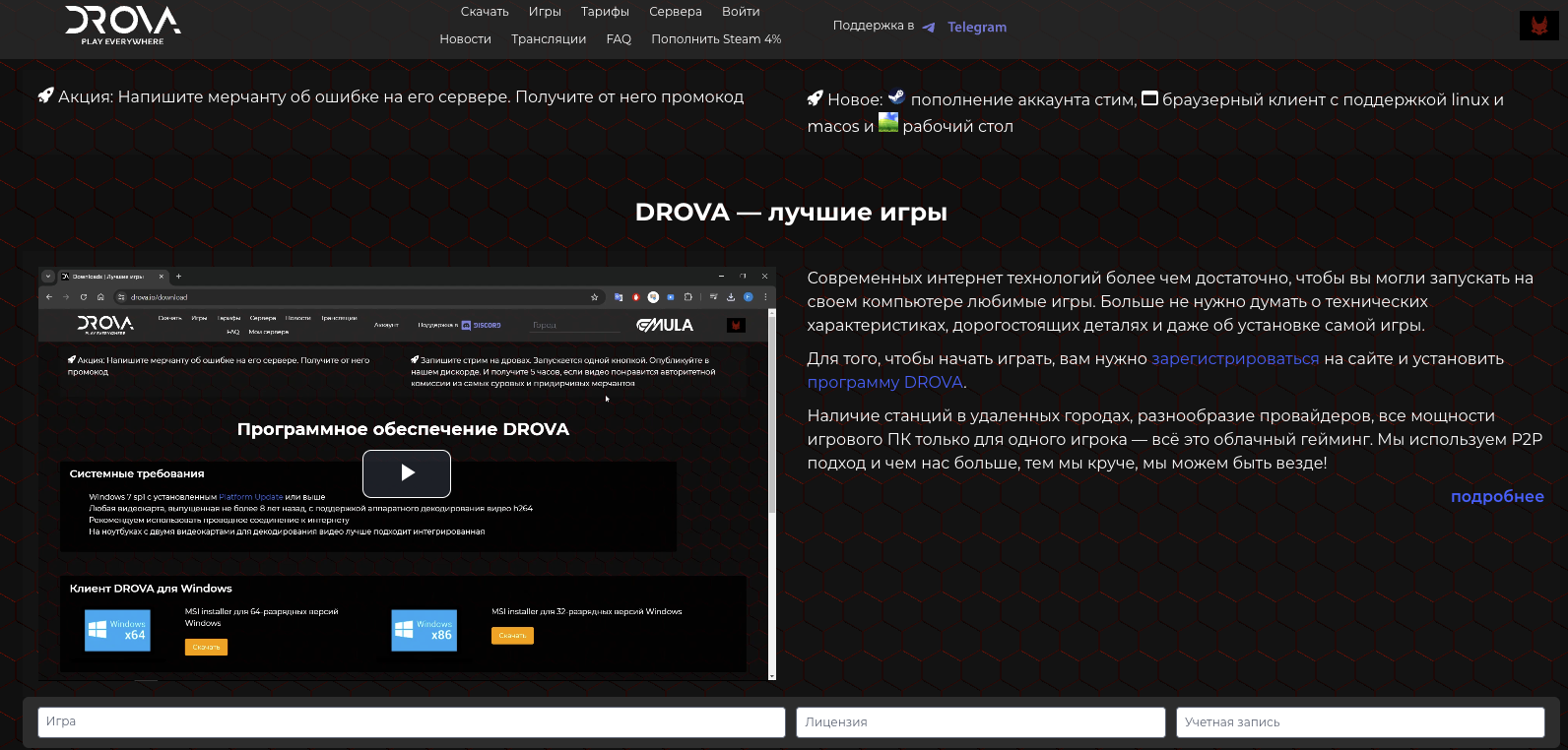 Обзор сервиса для облачного гейминга Drova: отзывы пользователей, что предлагается клиентам платформы, можно ли заработать с площадкой drova io