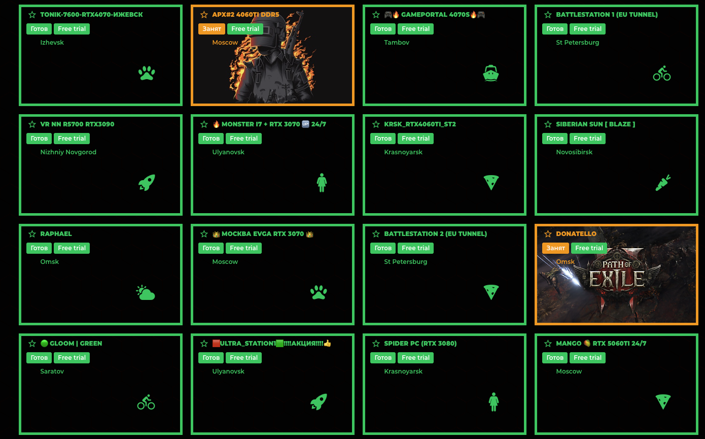На сайте пользователям предлагается арендовать сервера для игры в определенные игры или выбирать сервера с определенной мощностью или сервера с определенной игрой: