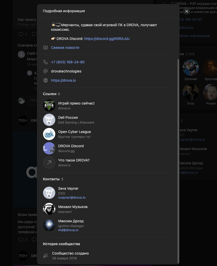 Последний пост в сообществе вышел в декабре 2024 года. Основная деятельность представителей проекта перешла в Телеграм-чат Drova Cloud Play. В нем чуть больше тысячи участников.