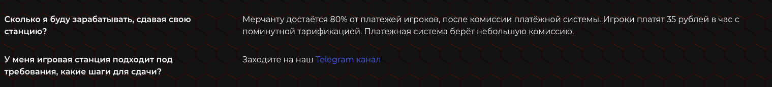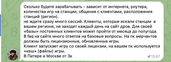 При этом указывается и средний заработок за месяц. Речь идет о суммах от 3 тысяч рублей для мерчантов из Москвы и Питера. Но доход во многом зависит от установленных игр, аптайма сервера, а также потока клиентов.