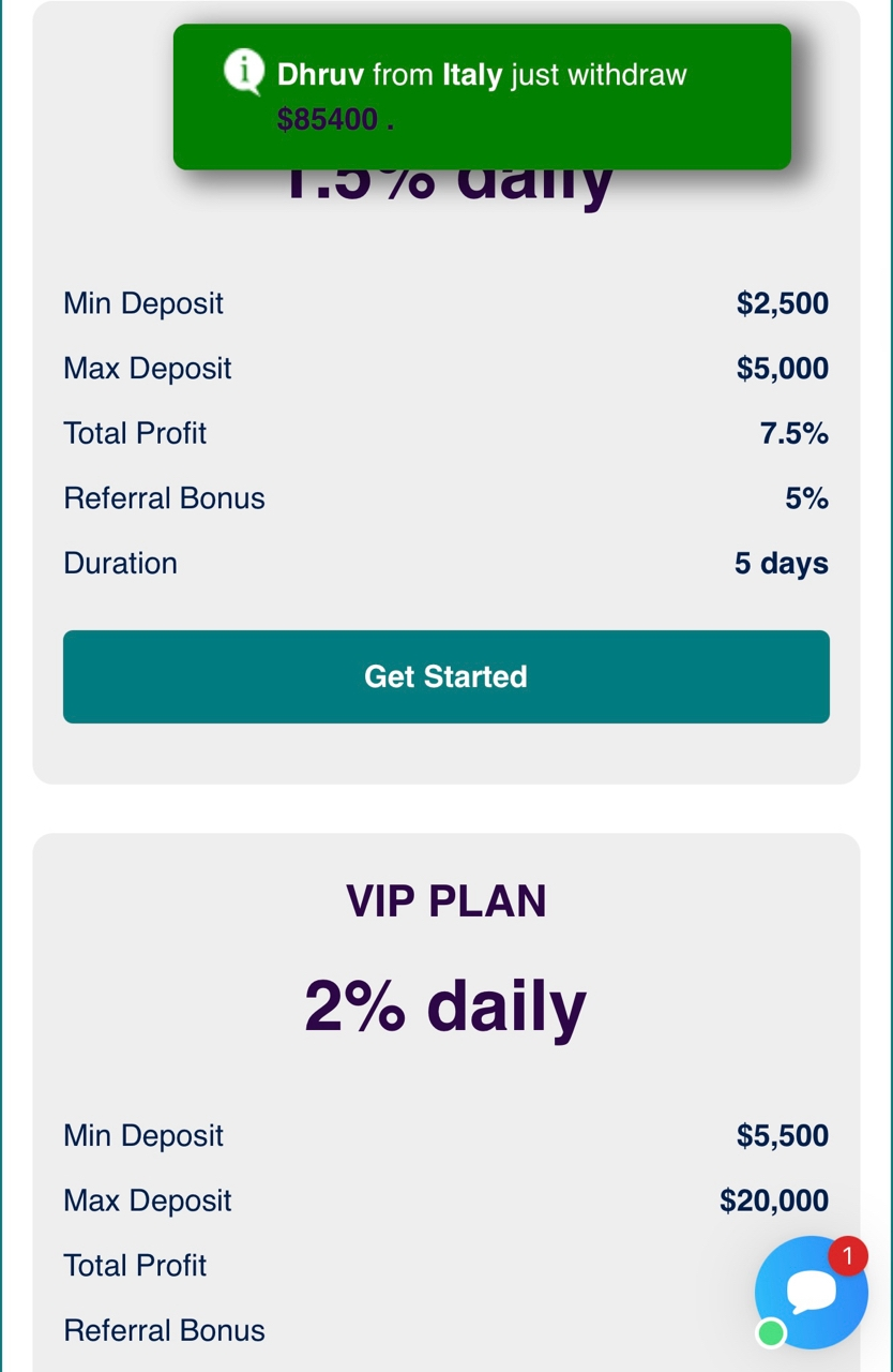 - Ultimate Plan – 3,5% прибыли в сутки, стартовый депозит 30 000 долларов, максимального порога нет.