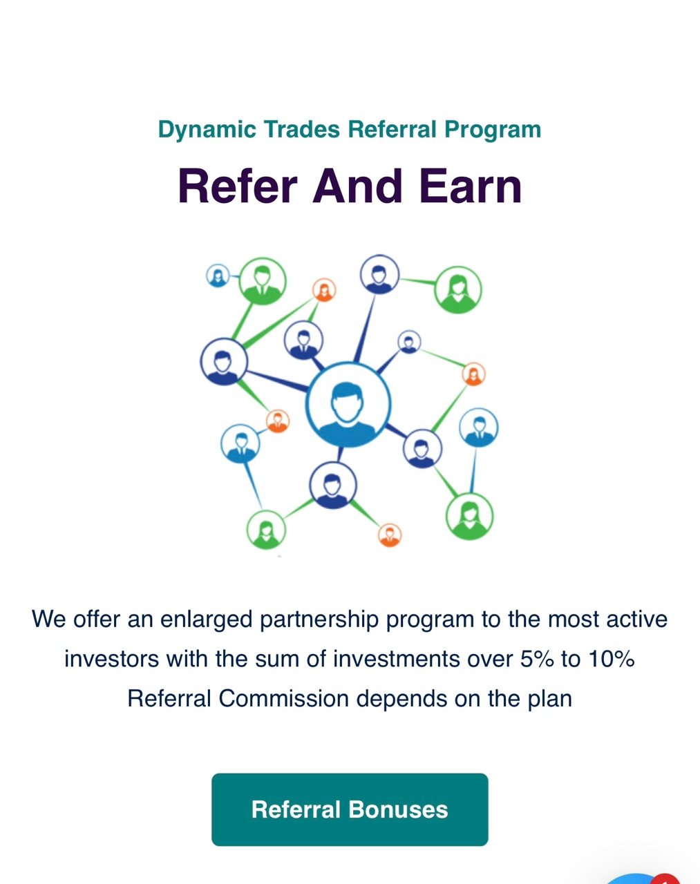 Каждый из инвесторов может принимать участие в партнерской программе. За привлечение партнеров в проект обещано от 5 до 10% от прибыли партнеров в зависимости от выбранного вами тарифного плана.