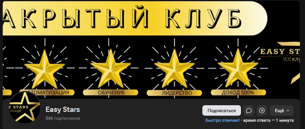 Контактные данные Easy Stars отсутствовали. Общение происходило только внутри закрытого сообщества ВКонтакте. Участники писали сообщения и получали инструкции через администраторов группы. После подтверждения платежа человек получал ссылку на Google-таблицу.