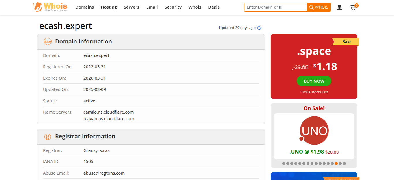 Мы проверили информацию о том, что сервис работает с 2022 года. Проверка по аналитическому инструменту WHOIS показала что проект действительно стартовал 31.03.2022 года. Однако не стоит исключать ребрендинг для подчистки репутации, так как последние изменения проекта были 09.03.2025.