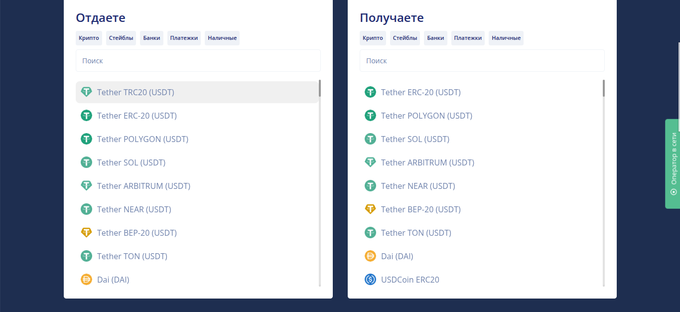 - Электронные доллары. Использовать можно USDT, USDC, DAI, XAUT.
