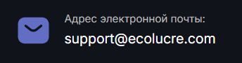 На онлайн-сервисе размещен адрес почты поддержки Support ecolucre com.