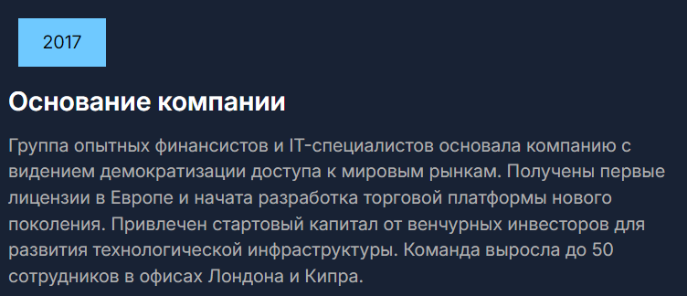 На официальном сайте платформы для торговли индексами, валютами, металлами, товарами и криптой размещены данные о фирме, призванные убедить аудиторию в порядочности финансового партнера.