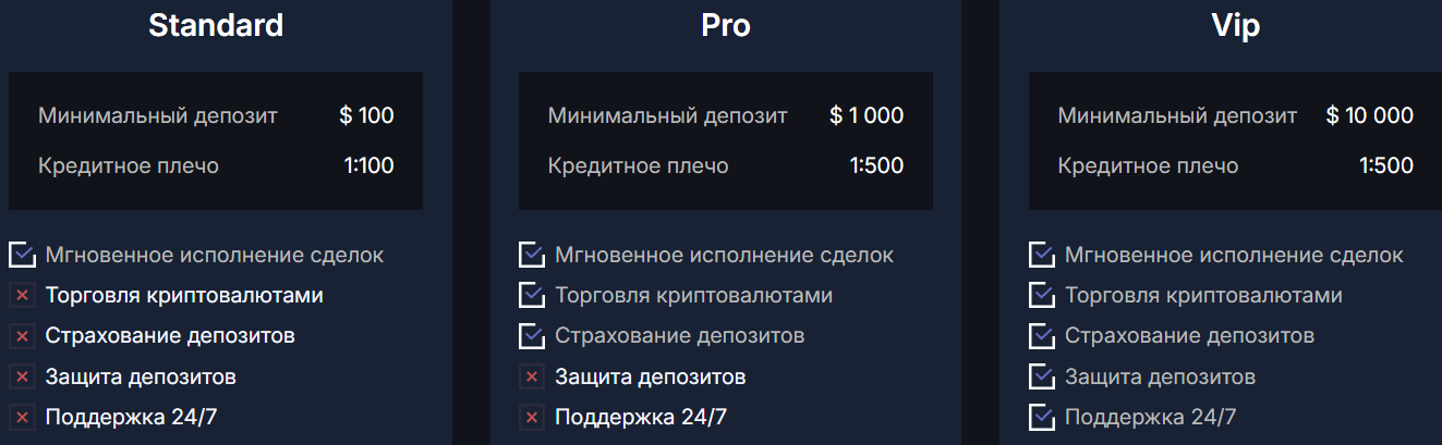 Владельцы ресурса для инвесторов и трейдеров предоставляют на выбор 3 типа аккаунтов, отличающихся минимальной суммой на депозите и условиями по сделкам. Для подключения базового тарифа на портале «Эколукре» достаточно пополнить валютный баланс на 100 долларов. Но регистрация такого счета не предполагает защиту денежных средств юзеров и возможность обращаться в отдел обслуживания круглосуточно. Для расширения списка опций необходимо выбирать более престижные аккаунты для регистрации и вносить на депозит с кошелька 1 000 либо 10 000 долларов.