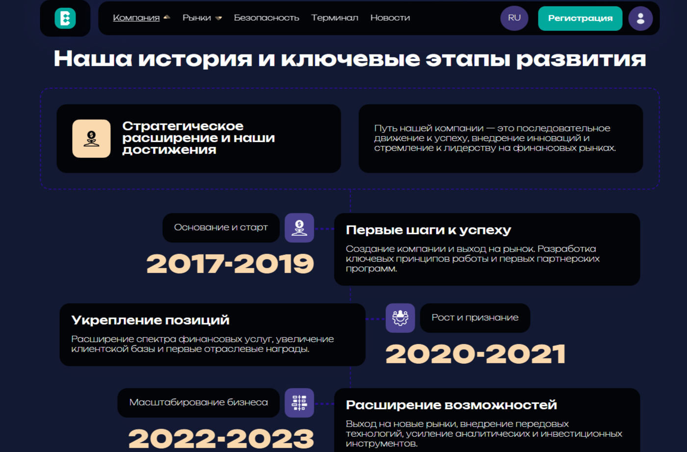 Брокерский веб-сайт необычайно похож на ресурсы bteksoft com и jucceco com, обвиненные в мошенничестве и разводе трейдеров. Отличаются лишь цвета дизайна и адреса регистрации. В шапке сайта гостей встречают вкладки «Компания», «Рынки», «Безопасность», «Терминал», «Новости». В разделе «Лицензии» размещена информация о том, что деятельность организации регулируется DFSA, FCA, CSSF, VFSC. Адрес регистрации компании: Leoforos Stratigou Timagia 20, Larnaca 6051, Cyprus.