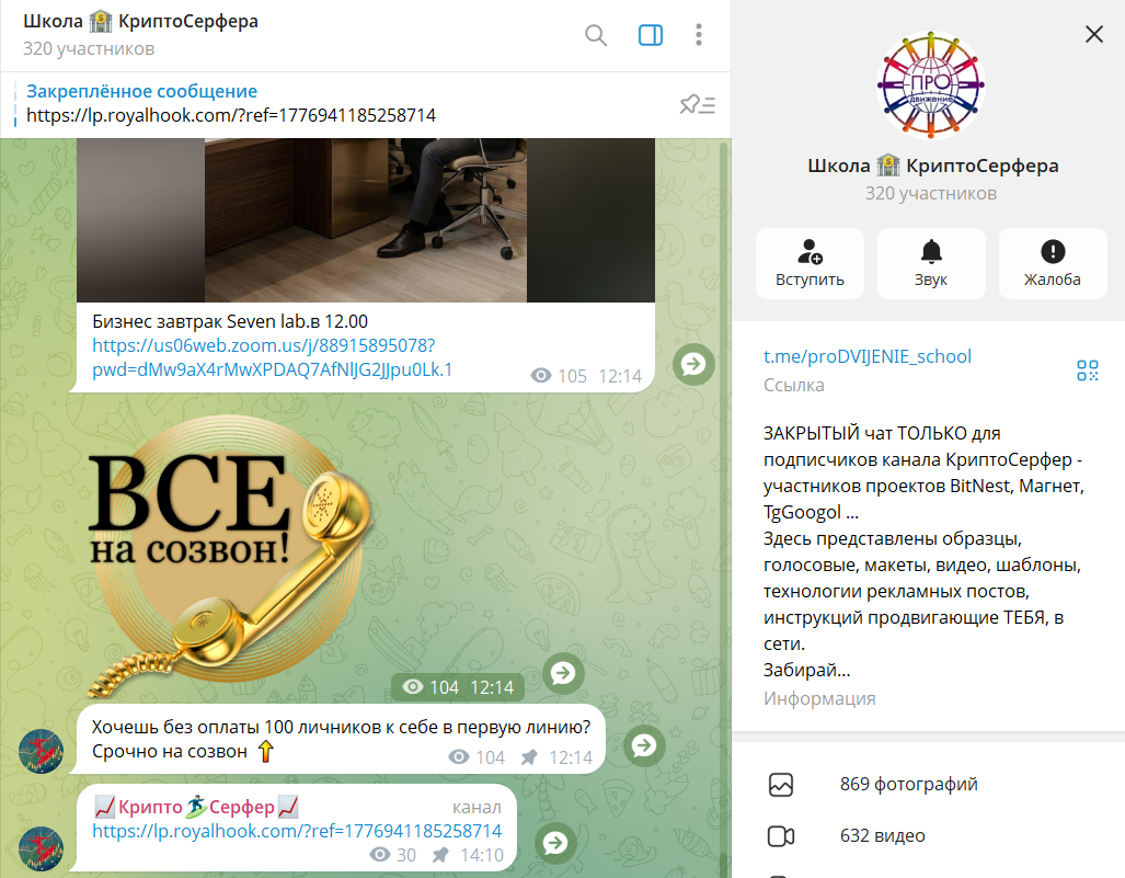 - телеграмм-канал @Kripto_Serfer и чат @KriptoSerfer под брендом «Школа Крипто Серфера»;