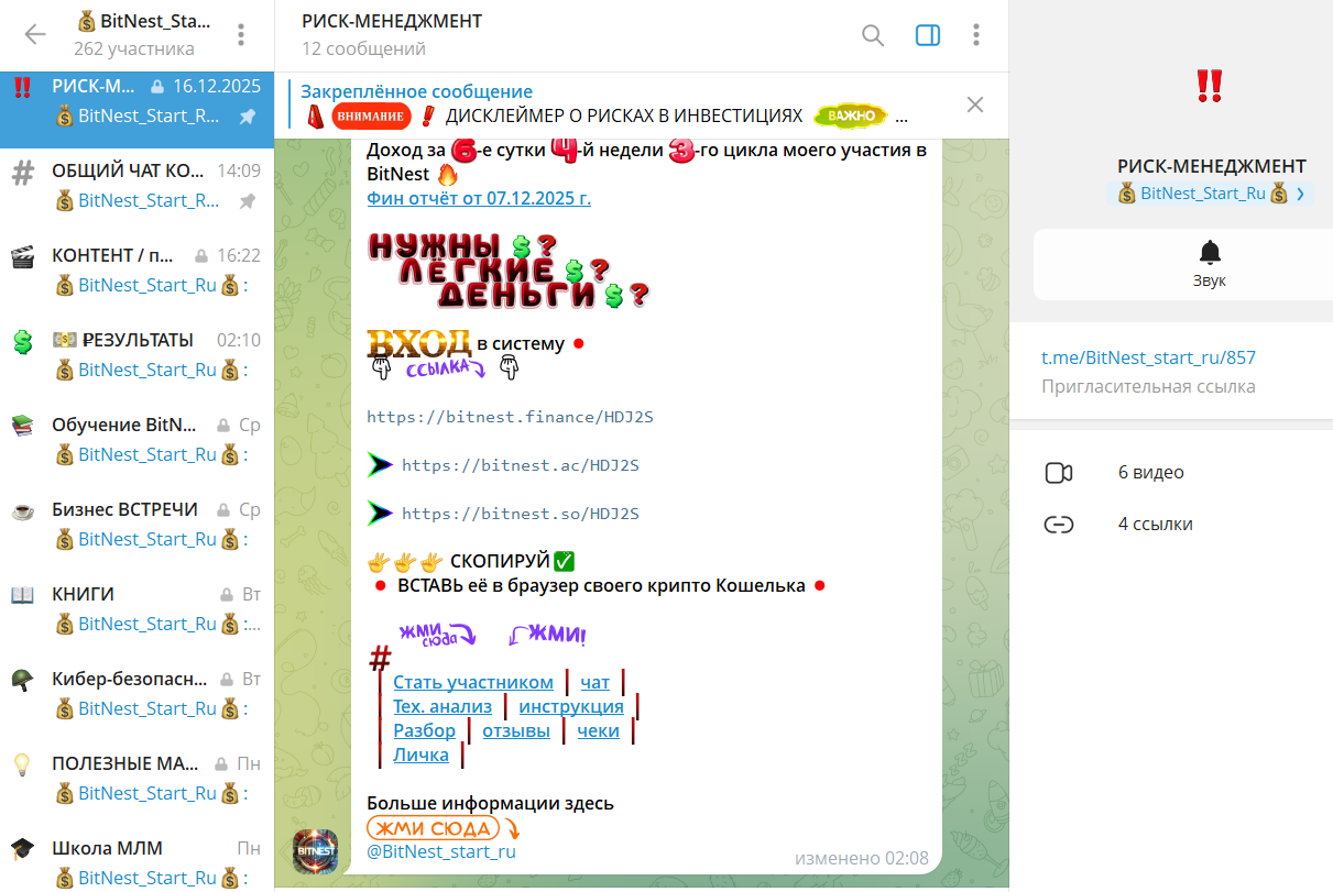 - BitNest start ru – MLM-проект с реферальными уровнями и обязательным приглашением новых участников для доступа к более высоким ступеням дохода.