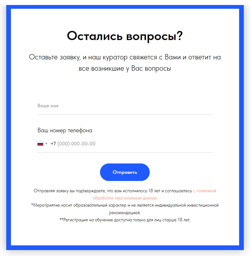 - единственный реальный способ установить контакт – форма обратной связи на сайте, где нужно сообщить свой номер телефона и назначенный куратор свяжется сам.