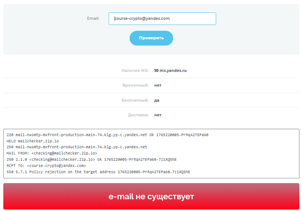 - есть электронная почта Course Crypto Yandex Com (проверка показала, что она не существует);