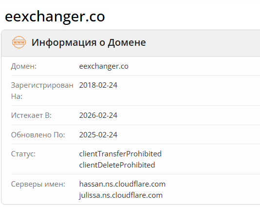 В результате обследования портала обменного пункта мы обнаружили интересные детали. Домен eexchanger co обосновался в сети 24 февраля 2018 года. На момент обзора сервису исполнилось практически 8 лет. За время деятельности данной платформы ее владельцы не легализовали свою деятельность, заключили партнерские отношения с сомнительными мониторингами, прекратили зашифрованное соединение. Сайт имел SSL-сертификат, действие которого закончилось 23 декабря 2024 года.