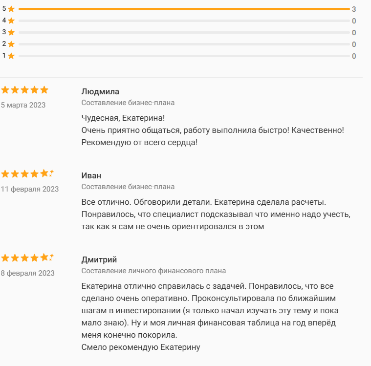 На аккаунте девушки на сайте Профи ру об инвестициях с Екатериной Новиковой представлены только положительные отзывы. Однако не исключено, что использовалась накрутка, так как все рецензии выложены практически в одно время.