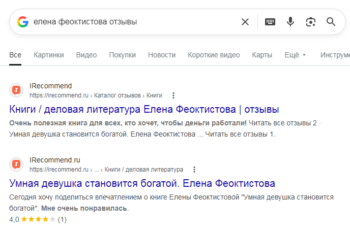 Реальный стаж Елены определить не получилось, но официально она работает 8 лет. За этот большой период времени автор не стала известным и востребованным финансовым экспертом. В сети Елена Феоктистова упоминается в разоблачениях, но информации и отзывов о ней почти нет. При этом она везде указывает, что обучила более 100 000 учеников за 18 лет работы. Похоже, это ложь.