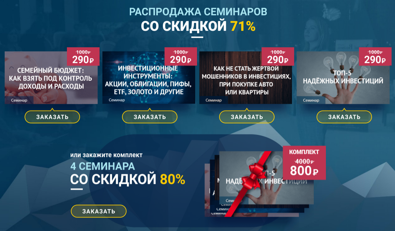 Сейчас на площадке идет распродажа семинаров со скидкой 71%: