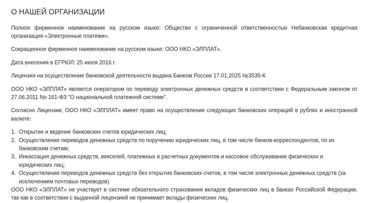 Информации о компании ООО НКО «Элплат»: регистрация и лицензии, адрес и контакты