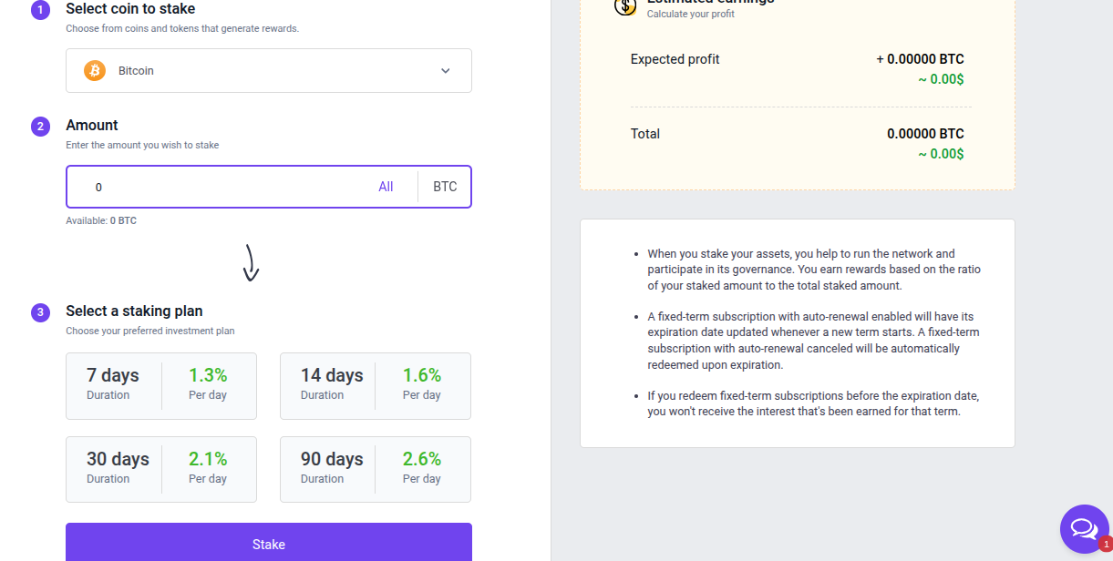 - Стейкинг на 7 дней под 1.3% в сутки.