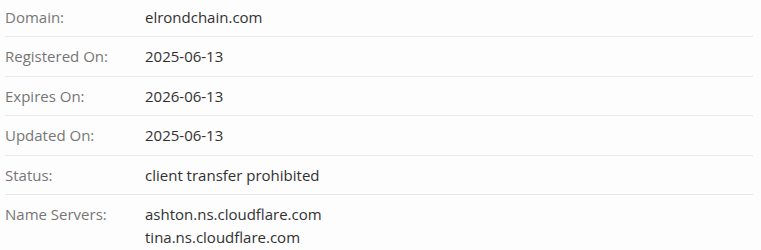 Теперь мы поняли, почему команда так яро скрывала детали запуска. Анализ показал, что проект ElrondChain com стартовал недавно — 13.06.2025, а это противоречит легенде о многолетнем профессионализме.