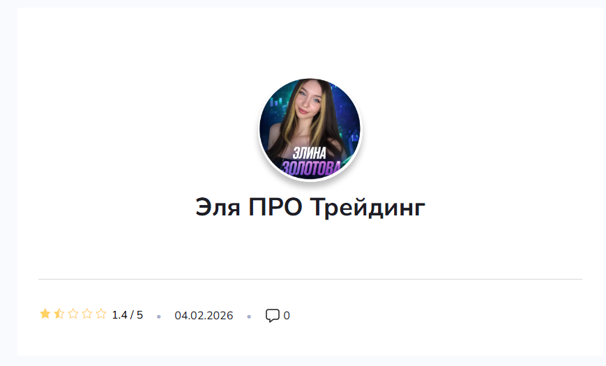 В интернете не найти реальных отзывов на канал «Эля ПРО Трейдинг», если судить по ситуации в начале 2026 года. Это говорит не только о том, что трейдера не назвать опытным, но и свидетельствует об отсутствии клиентов.