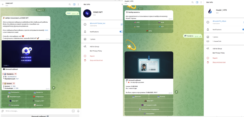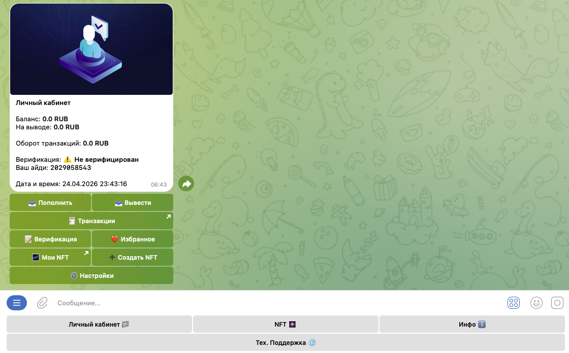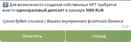 В первом случае на разных каналах в Тг, которые ведут некие трейдеры, рассказывают о возможности быстро заработать крупную сумму на трейдинге НФТ. Для этого достаточно создать аккаунт в боте, внести минимальную сумму пополнения – 5 тысяч рублей. После этого автор выдаст сигнал на покупку того или иного токена.