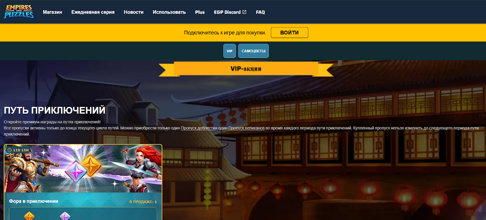Параллельно функционирует веб-сайт Empiresandpuzzles Com, где доступна критически важная информация о проекте. Здесь есть магазин внутриигровых предметов (их можно только приобретать за донаты), новости, инструкции, платная подписка и другое.