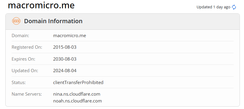 Домен сайта был зарегистрирован еще в 2015 году.