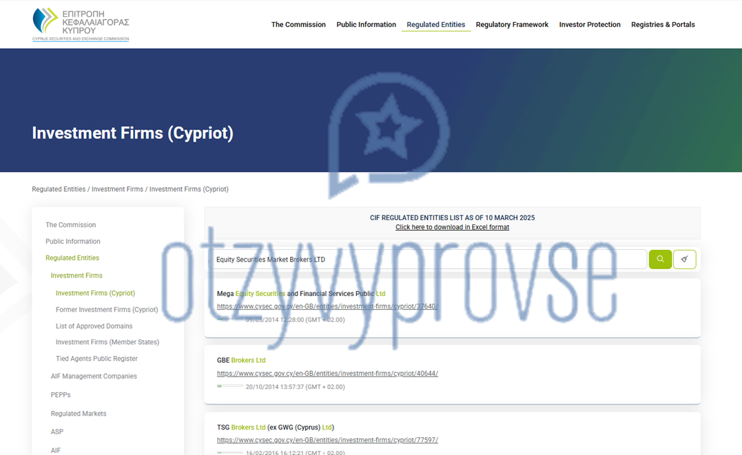 Equity Securities Market Brokers LTD работает через сайт esmb net. Год основания на сайте не указан, но домен зарегистрирован недавно. Юрисдикция регистрации описана как европейская. Утверждается о работе на глобальном финансовом рынке. Компания якобы лицензирована CySEC с правом обслуживания клиентов из стран ЕС и ЕЭЗ.