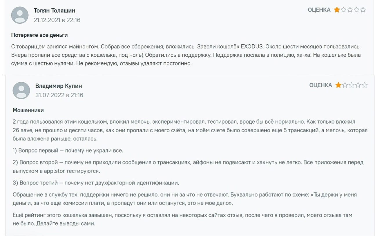 Прежде чем выбрать exodus crypto wallet для хранения активов, нужно досконально ознакомиться с отзывами в сети. Большое число пользователей свидетельствуют о том, что вложения исчезают, а техподдержка ссылается на атаки хакеров.