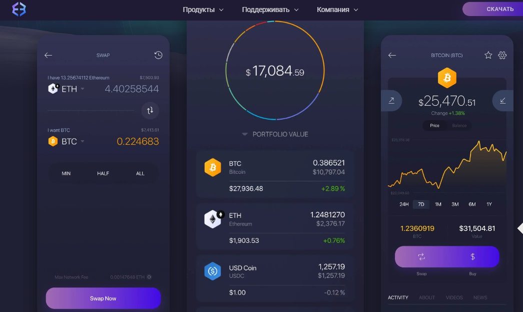 История создания датируется 2015 годом. Приложения exodus crypto bitcoin wallet поддерживают все основные ОС – Windows, MacOS, Linux, Android и iOS. Интерфейс кошелька довольно простой и удобный, легкий в использовании. Одним из преимуществ проекта является то, что разработчик поддерживает право пользователя на анонимность — личную информацию сторонним лицам предоставлять не нужно. Плата за регистрацию, обслуживание кошелька и его использование не взимается. Ключом доступа является стандартная фраза из 12 слов; есть функция восстановления учетной записи по электронной почте. Создание кошелька эксодус крипто исключает необходимость скачивать блокчейн, требующий много свободного места на диске. Хранение приватных ключей осуществляется на устройствах пользователя. Позволяет подключиться к более чем 12 сетям, включая Ethereum, Solana, BSC, с помощью расширения оригинального браузера Exodus Chrome. В общей сложности поддерживается более 50 сетей. Крипто кошелек эксодус имеет встроенную функцию трейдинга. Она предоставляется платформой Shapeshift, что позволяет обменивать одну валюту на другую быстро и просто.