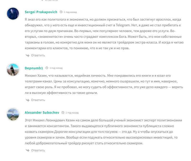 Нам не удалось найти большого количества негативных отзывов о «Фонде экономических исследований» Михаила Хазина. Пользователи критикуют завышенную стоимость услуг по сравнению с объемом и глубиной информации. Закрытый контент в тг-каналах или платные обзоры повторяют общедоступные данные. Иногда они уступают по качеству бесплатным постам Хазина в его группе.