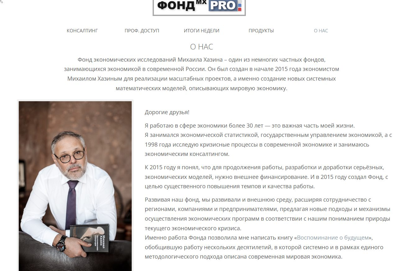 Фонд Михаила Хазина зарегистрирован 11 февраля 2015 года. Офис компании находится в Москве. На сайте представлен контактный телефон для связи по вопросам конференций. Электронная почта для обратной связи и претензий: info fondkhazin com.
