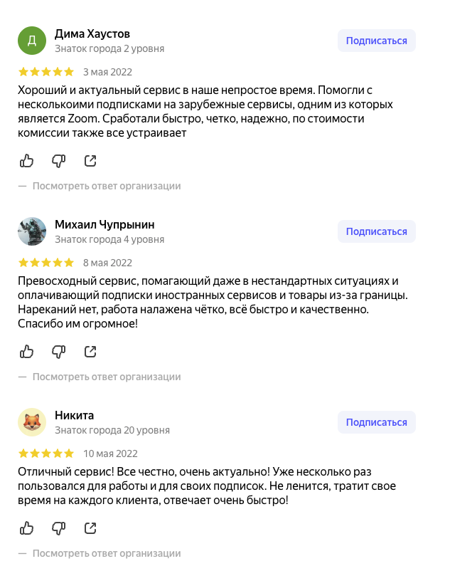 Тем не менее на других площадках у сервиса идеальная репутация и много положительных отзывов, которые выходят с разной периодичностью: