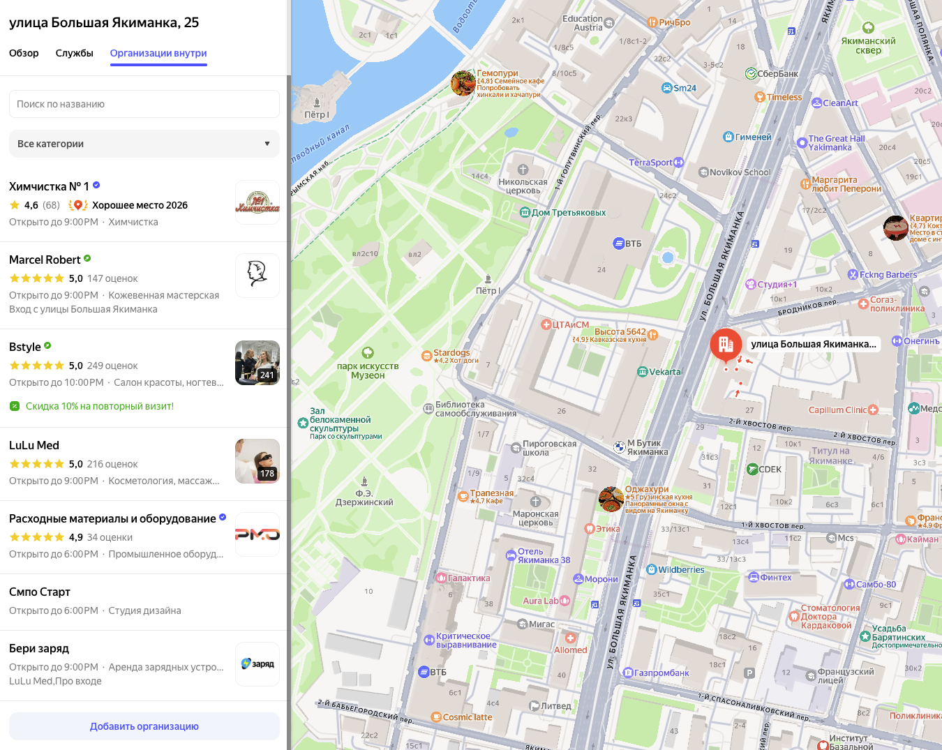 Если просто поискать эту компанию по телефону или названию, то все же можно найти ее на картах Яндекс. Только адрес указан так: «оказывает услуги в Москве, радиус 10000 км»: