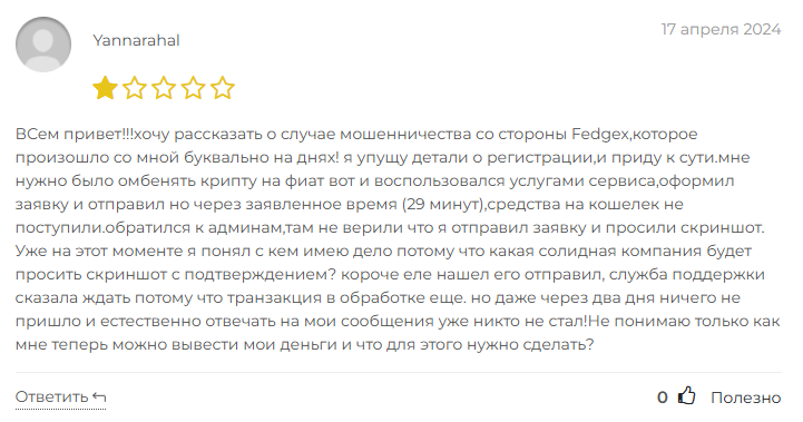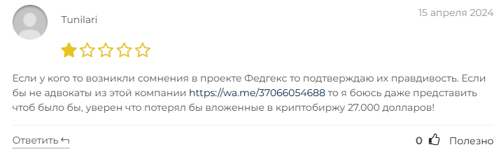 Отзывы о Fedgex исключительно негативные. Люди не могут вывести деньги – главная жалоба. Обвиняют в открытом мошенничестве. Рассказывают о крупных потерях. Кто-то чуть не лишился 27 тысяч долларов – спасли только юристы. Другие после изучения функционала сразу поняли схему и отказались работать.