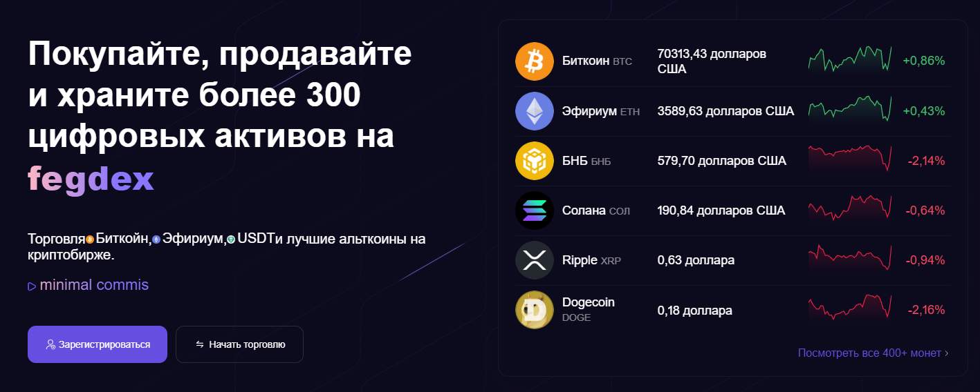 Fedgex заявлял о 300+ активах: Bitcoin, Ethereum, Solana, Dogecoin, Pepe, Ripple, BNB, Dogwifhat, Polymesh, Fantom, FLOKI, Fetch.ai. Обработка транзакций в 75+ сетях. Три типа торговли: спот, деривативы, опционы. Единый торговый счет. Быстрые транзакции и легальный заработок – так говорили.