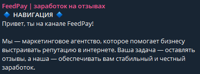 FeedPay заработок на отзывах — проект в Telegram для фрилансеров. Если зарегистрироваться на картах и специальных сервисах, можно получать до 100 рублей за выполненное задание. В Telegram очень много подобных проектов, где не платят исполнителям, поэтому мы решили проверить FeedPay.