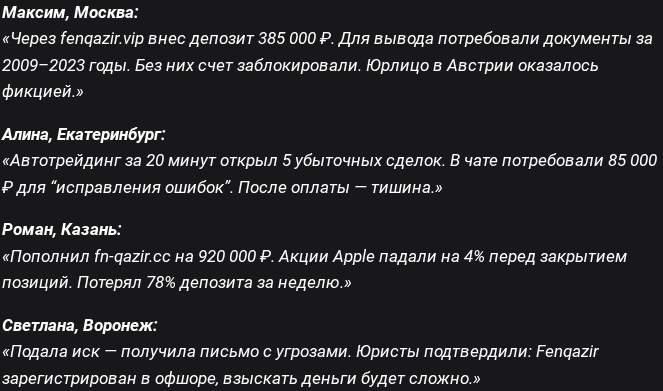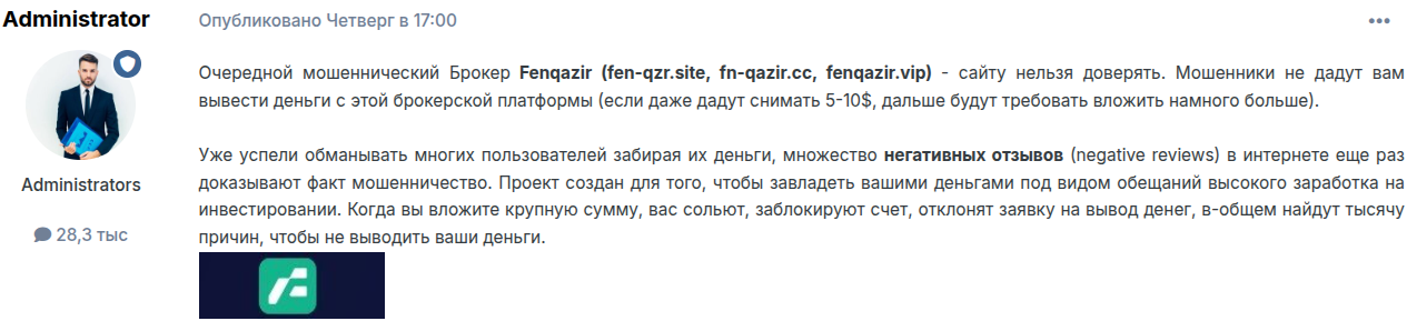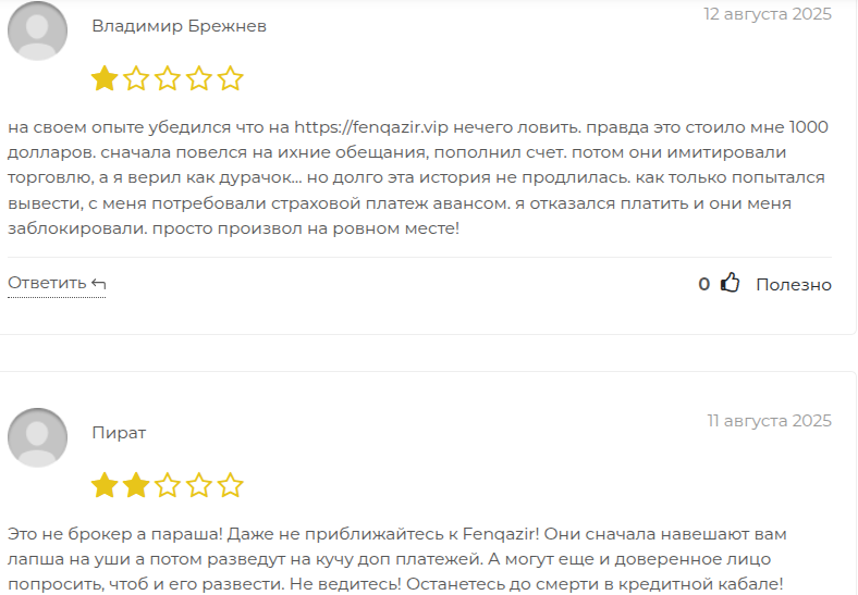 - В сети только отрицательные отзывы о FenQazir vip про то, что брокер развод.