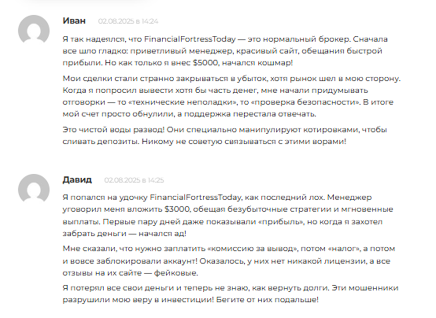 Очередная ловушка для доверчивых: FinancialFortressToday обещает золотые горы, а в итоге оставляет людей без копейки. Не ведитесь на этот развод!