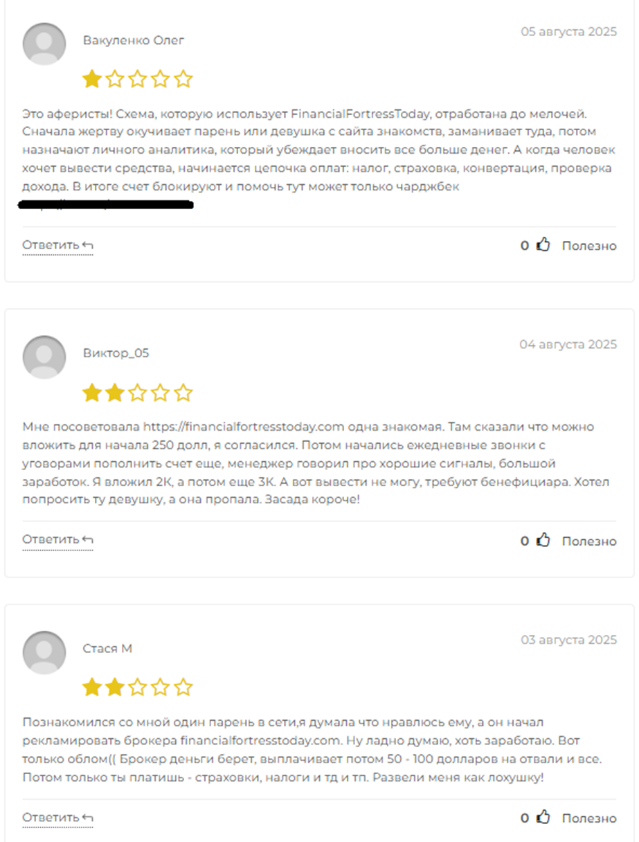 Обзор брокера Financialfortresstoday Com: отзывы реальных пользователей и анализ деятельности «Финанциал Фортресс Тудей»