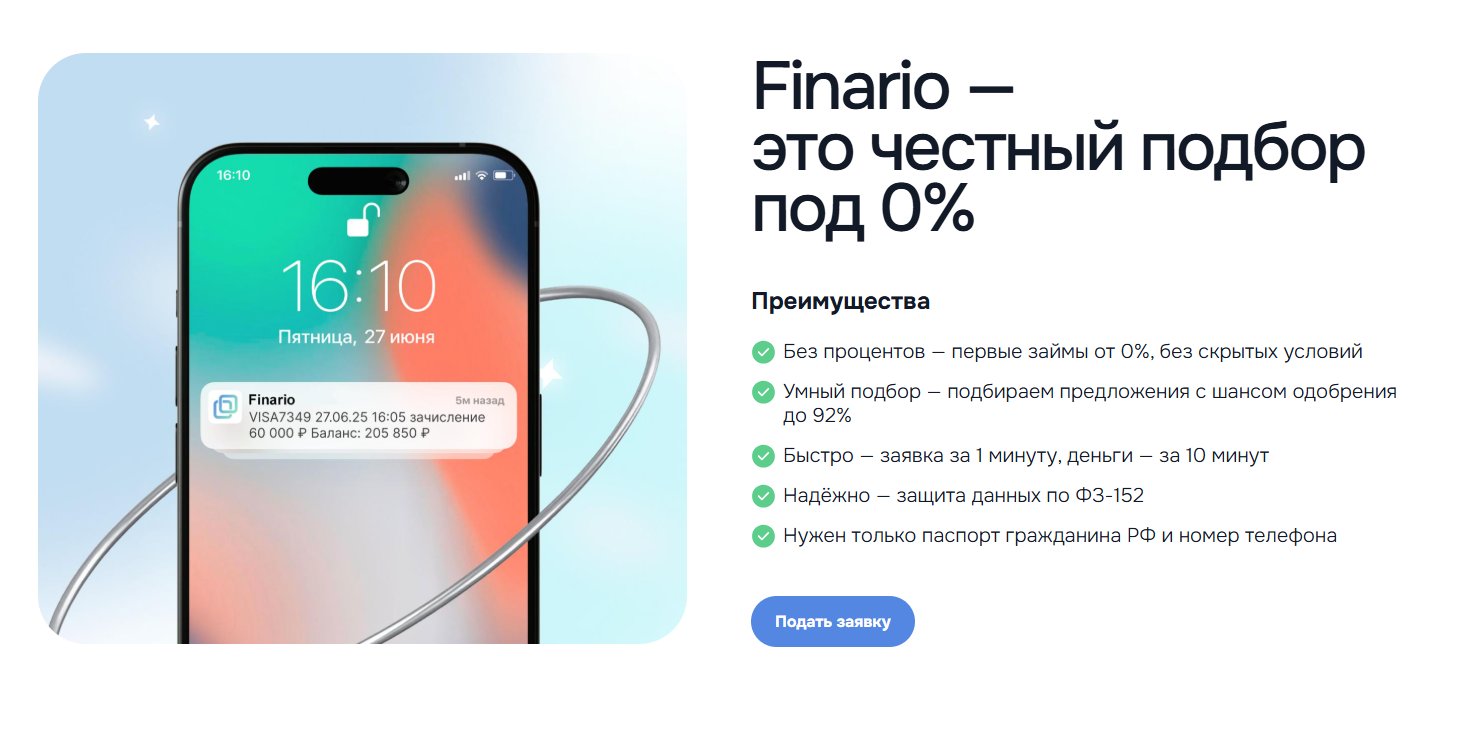 Finario – сервис подбора займов, который действует по весьма сомнительной схеме. Пользователям говорят о том, что они могут получить займ БЕСПЛАТНО по номеру телефона с любой кредитной историей. Для этого достаточно предоставить телефон и паспорт. Но при изучении условий предоставления услуг от Финарио, становится понятно, что «бесплатно» ничего не предоставляется. В обзоре расскажем подробнее о деятельности платформы.