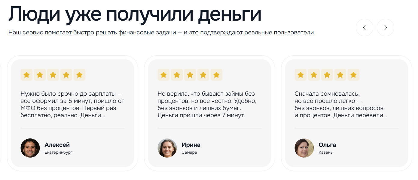 Сама компания не является финансовой организацией, а ее обещания про БЕСПЛАТНЫЕ займы – всего лишь рекламная информация, которая далека от действительности. Подробнее расскажем в особенностях работы сервиса.