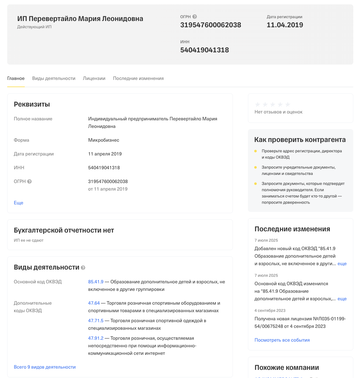 - длительное время присутствия на рынке — это видно по медийным ресурсам и дате регистрации ИП;
