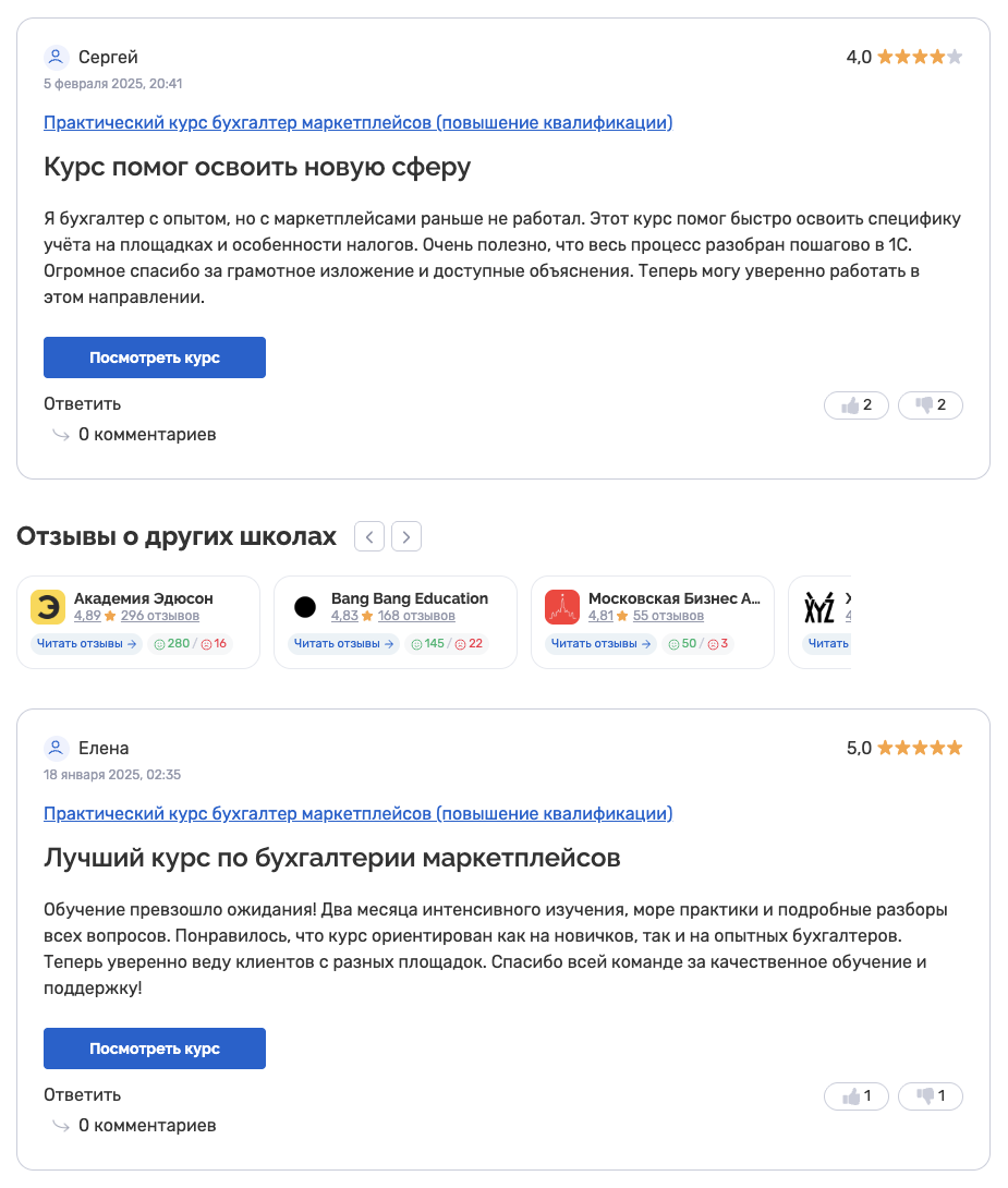 Авторы ревью заявляют, что полностью довольны пройденными курсами. Как следует из их сообщений, они после прохождения обучения действительно смогли усовершенствования свои знания и навыки в области бухгалтерии.