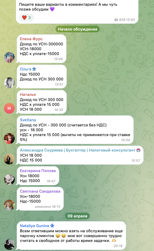 Отметим, что это чаще всего не полноценные дискуссии. Участники обычно просто коротко отвечают на вопрос, который был задан в посте.